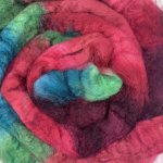These wool fibers are kettle dyed by hand with professional textile dyes to create brilliant, long-lasting colors. The wool is handled with top with care to ensure it is lofty and easily drafted. It's easier and more enjoyable to work with quality fiber, and consequently, it yields a better result! Due to the nature of hand dyeing, colors may differ slightly from braid to braid. If working from multiple braids, mix them together as you spin for the most blended look.